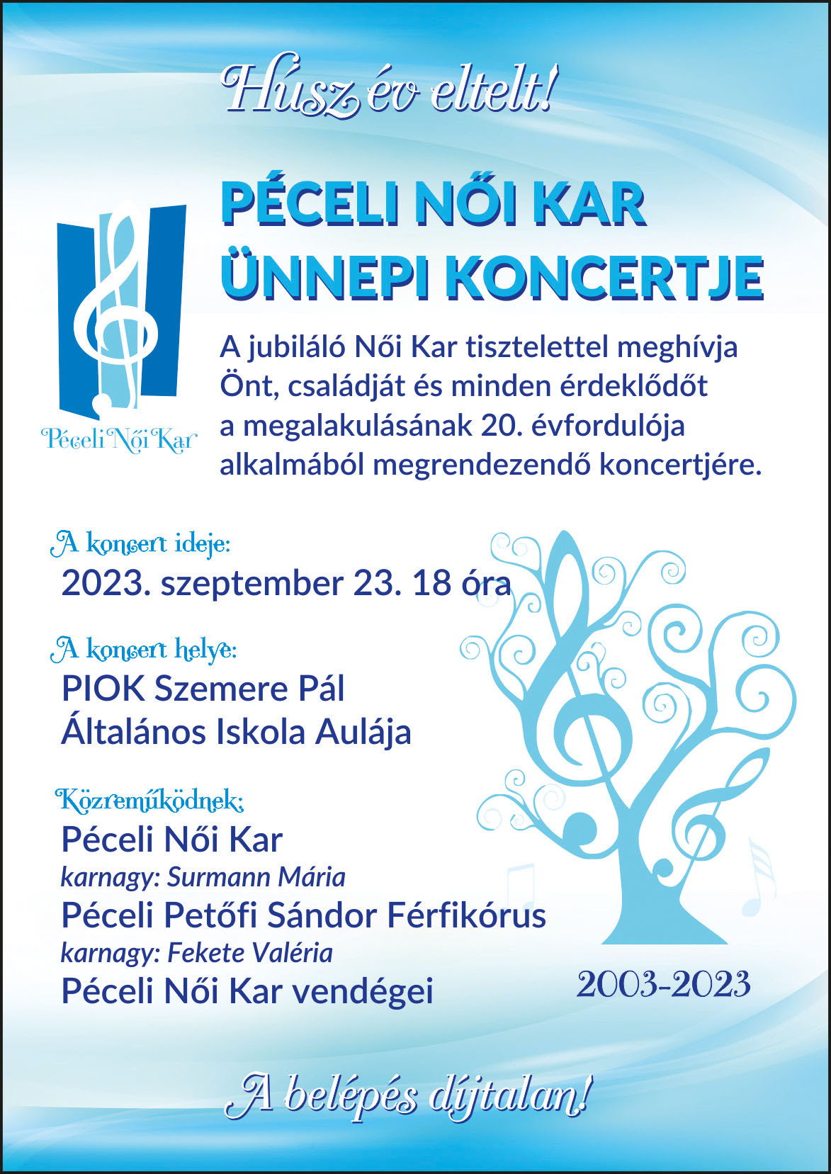 Kezdőlap Események Péceli Női Kar ünnepi koncertje 2023 szeptember 23. 20:00 Péceli Női Kar ünnepi koncertje
