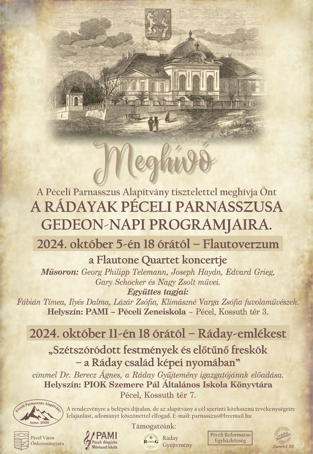Kezdőlap Események „Rádayak Péceli Parnasszusa” - Gedeon-napi program 2024 október 05. 20:00 „Rádayak Péceli Parnasszusa” - Gedeon-napi program