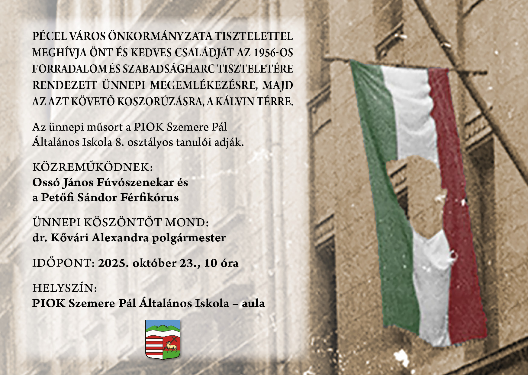Kezdőlap Hírek Önkormányzat Meghívó október 23-i megemlékezésre 2025 október 08. Meghívó október 23-i megemlékezésre