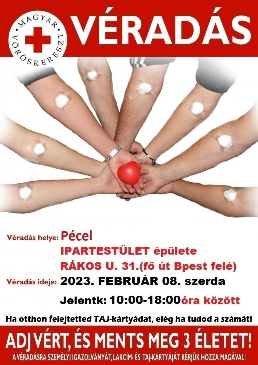 Kezdőlap Hírek Közösség Véradás - 2023. február 8. (szerda) 10 órától 18 óráig - Péceli Ipartestület székháza (Rákos utca 31.) 2023 február 01. Véradás - 2023. február 8. (szerda) 10 órától 18 óráig - Péceli Ipartestület székháza (Rákos utca 31.)