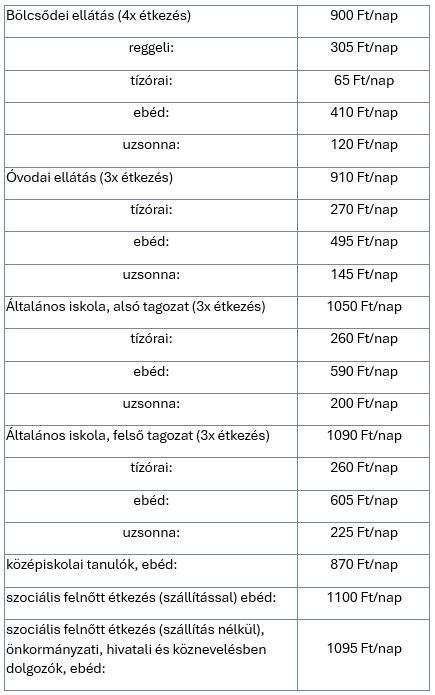 Kezdőlap Intézmények Étkezési térítési díjak Étkezési térítési díjak 2023. szeptember 1-jétől hatályos a Pécel Város Önkormányzata Képviselő-testületének 11/2023. (V.3.) önkormányzati rendelete alapján