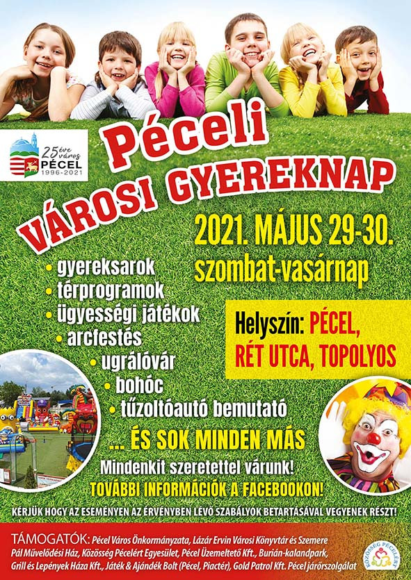 Kezdőlap Hírek Közösség Péceli Városi Gyereknap 2021 május 24. Péceli Városi Gyereknap 2021. május 29-30.