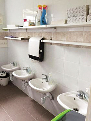 A Nyitnikék Óvodában volt egy szintén elavult mosdó rész, amit naponta 60 gyermek használ, itt két piszoár eleve nem működött. Nagyon régi álmuk valósult meg, hogy kiépítésre kerültek újabb gyermek WC-k a piszoárok helyett, valamint a játszóudvaron a homokozók újulhattak meg idén nyáron.